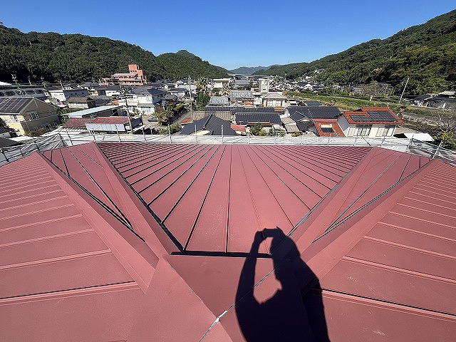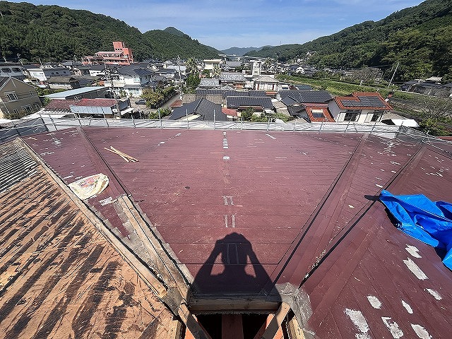 備考 お世話になりました。横葺板金から竪ハゼ板金への葺き替え工事でした。葺き替え工事なので野地面に不陸があり中々大変でしたがどうにかおさまりました。大きい工事に慣れていなくて現場の進捗に支障がでたりしました。焦らずよく確認することが大事ですね。